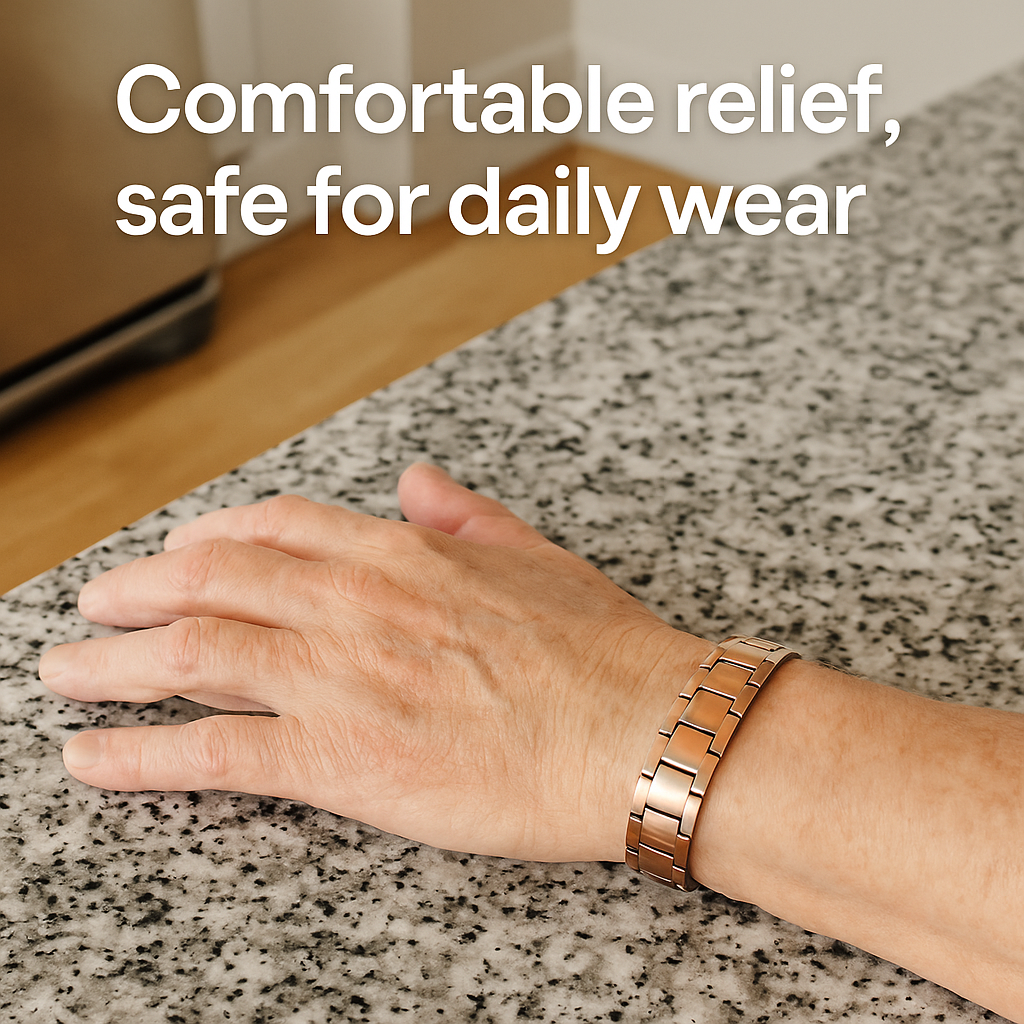 Our bracelet is designed with strong neodymium magnets and pure copper, both widely used in natural wellness practices. Many customers report noticeable relief from arthritis, carpal tunnel, and joint stiffness within just a few days of wear. While results can vary from person to person, thousands of users have shared consistent improvements in comfort and mobility.