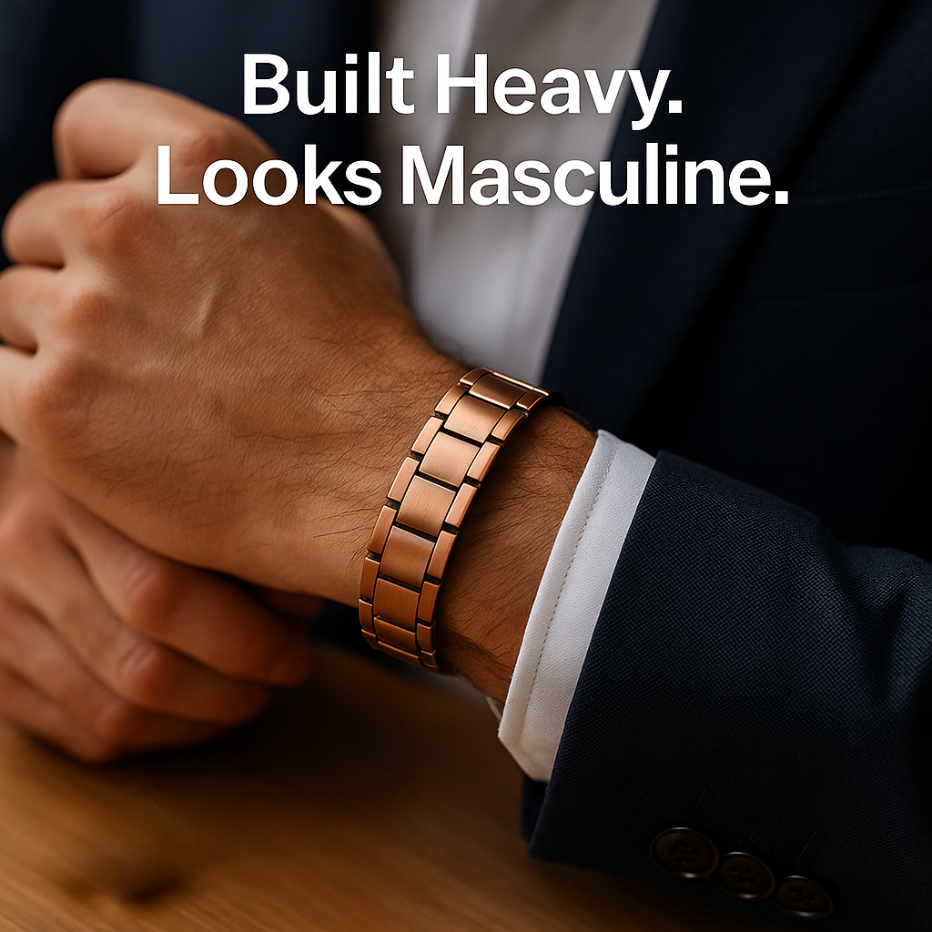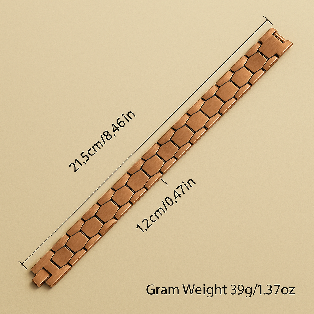Engineered with three lines of powerful neodymium magnets delivering 3500 gauss of magnetic therapy, this bracelet harnesses time-tested natural healing backed by modern magnetic science. Crafted from 99.99% pure copper—hypoallergenic, lead-free, and nickel-free—it provides therapeutic relief for arthritis, carpal tunnel, back pain, and joint stiffness without pills or side effects. The heavyweight masculine design looks like premium jewelry, not a medical device, while the included professional adjustment tools ensure a perfect custom fit in seconds.